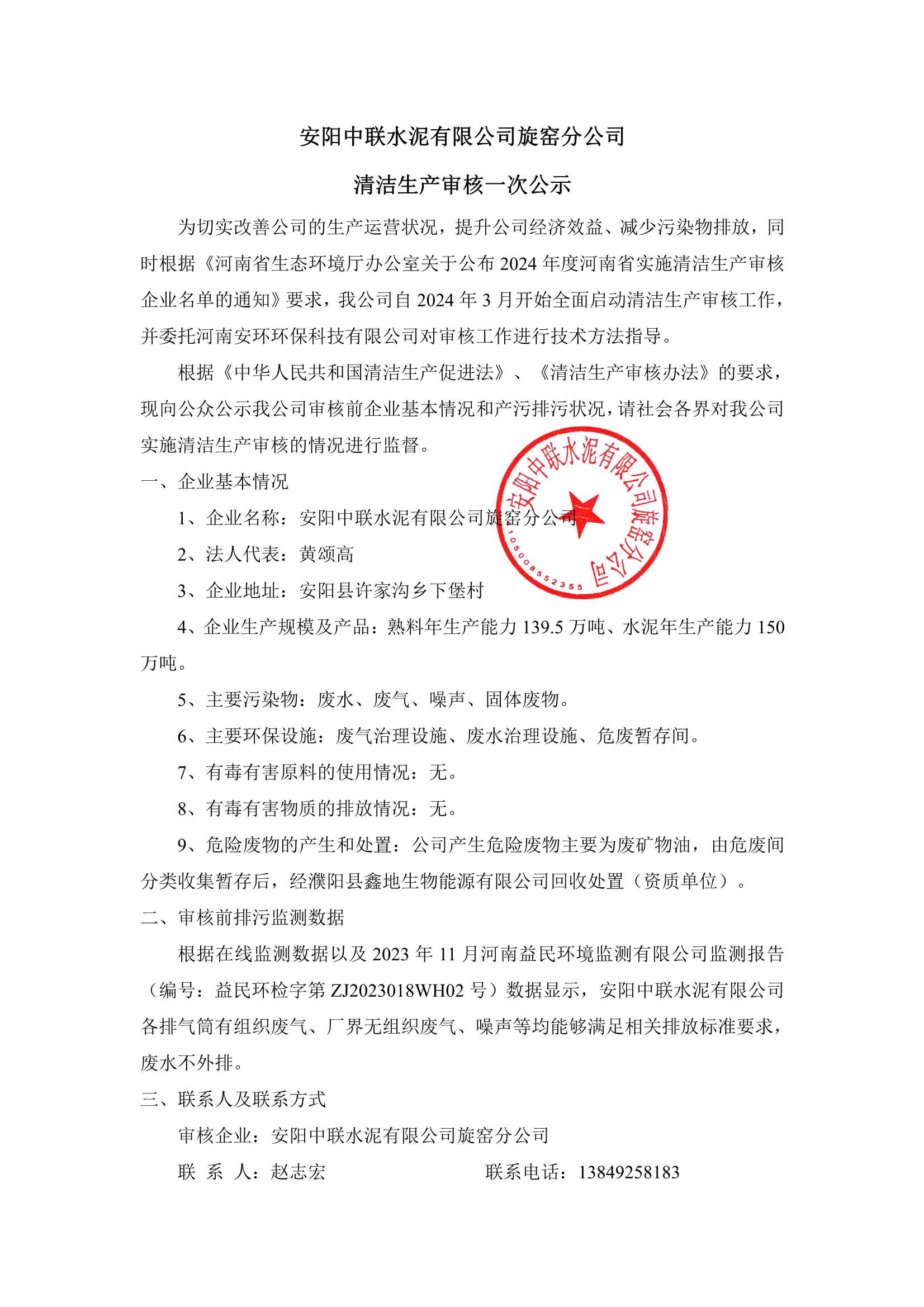 安陽中聯(lián)水泥有限公司旋窯分公司突發(fā)環(huán)境事件應急預案公示